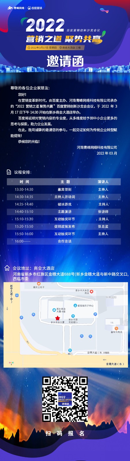【邀請函】倒計時還有3天 2022營銷之道 聚勢共贏 ” 百度營銷創(chuàng)新沙龍會議誠邀您的到來。