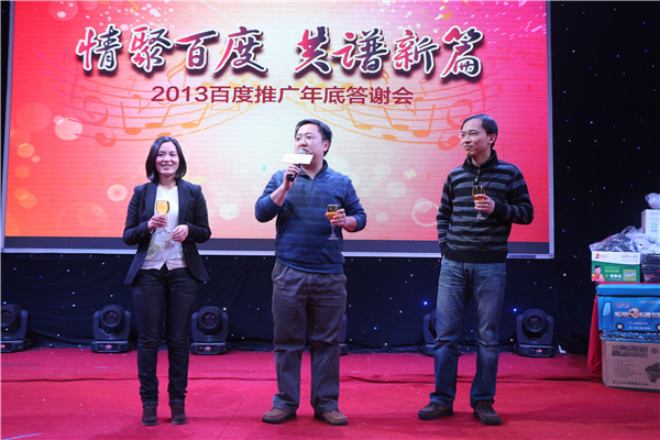 2013即將過去,在過往的一年,百度和各界同仁一同努力,用勤奮與智慧譜寫了百度推廣絢麗篇章。今晚,百度與各企業(yè)代表共同暢談營(yíng)銷之道,共譜創(chuàng)業(yè)新篇。