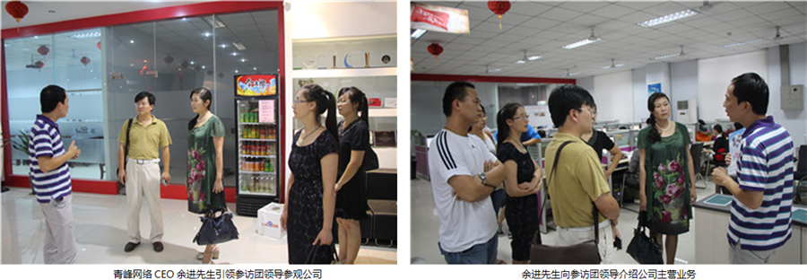 青峰網(wǎng)絡(luò)科技CEO余進(jìn)先生引領(lǐng)參訪團(tuán)領(lǐng)導(dǎo)參觀公司辦公區(qū),在參訪過程中余進(jìn)先生與參訪團(tuán)領(lǐng)導(dǎo)進(jìn)行了親切而友好的交流,并向參訪團(tuán)領(lǐng)導(dǎo)介紹了公司的主營業(yè)務(wù)、企業(yè)文化,當(dāng)?shù)弥喾寰W(wǎng)絡(luò)從新鄉(xiāng)市一家名不見經(jīng)傳的小網(wǎng)絡(luò)公司,一路過關(guān)斬將,經(jīng)過十一年的持續(xù)發(fā)展,最終成就新鄉(xiāng)市信息產(chǎn)業(yè)界大企業(yè),業(yè)務(wù)覆蓋新鄉(xiāng)、焦作、安陽、洛陽、浙江金華五市時,參訪團(tuán)一行領(lǐng)導(dǎo)無不由衷的發(fā)出了贊嘆。