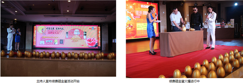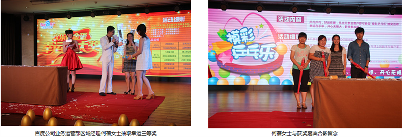 由于市場部和百度客服部的精心策劃和認(rèn)真籌備,本次答謝會在各環(huán)節(jié)上相比以往都做了創(chuàng)新和改進(jìn),“摸彩乒乓樂”活動環(huán)節(jié)抓住了客戶心理,解決了客戶中途離場的難題,客戶中途離場率創(chuàng)造歷史新低。續(xù)費(fèi)砸金蛋送禮品環(huán)節(jié),更是把本次會議從一個高潮推向另一個高潮??头康耐聜儯脱鐣h(huán)節(jié)的節(jié)目也做了精心的準(zhǔn)備,使客戶在晚宴時,既嘗到了菜肴的美味,又對精彩的節(jié)目表演贊嘆不已。