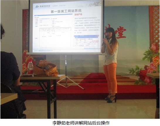 時(shí)間剛過下午兩點(diǎn)就絡(luò)繹有客戶前來(lái)簽到,兩點(diǎn)半左右來(lái)客達(dá)到高峰,網(wǎng)站客服部的同事們忙的不亦樂乎,由于事前準(zhǔn)備充分,前來(lái)參會(huì)的客戶井然有序的進(jìn)場(chǎng)落座。三點(diǎn)鐘會(huì)議準(zhǔn)時(shí)開始,先有主持人張美玉帶來(lái)互動(dòng)小游戲拉開本期會(huì)議的序幕,上半場(chǎng)主講李靜茹分別為客戶詳細(xì)講解了不同版本網(wǎng)站后臺(tái)的操作,其間不時(shí)有客戶就網(wǎng)站后臺(tái)操作問題跟李靜茹溝通交流;下半場(chǎng)姬燕娜就商務(wù)快車后臺(tái)的操作跟與會(huì)客戶進(jìn)行了耐心而細(xì)致的講解。