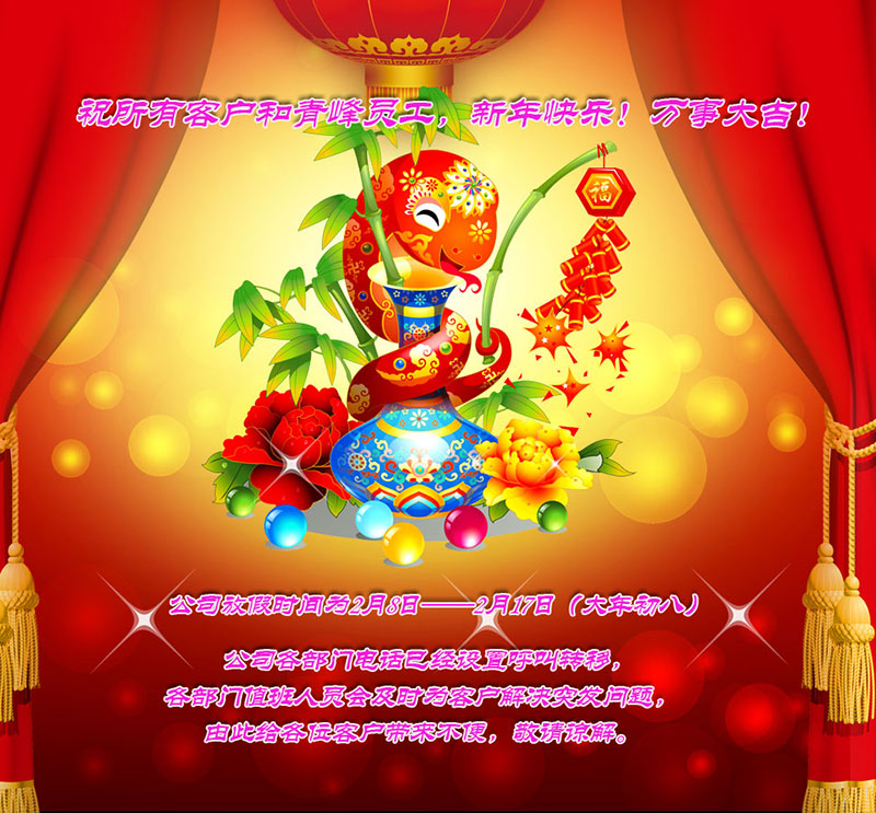 青峰網(wǎng)絡(luò)科技有限公司2013年春節(jié)放假通知