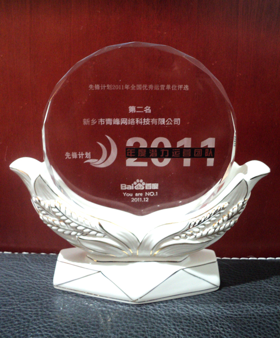 經(jīng)過激烈的競爭、嚴格的數(shù)據(jù)審查,先鋒計劃2011年全國優(yōu)秀運營單位評選結(jié)果日前出爐,新鄉(xiāng)青峰網(wǎng)絡(luò)科技有限公司獲得年度潛力運營團隊第二名的好成績!