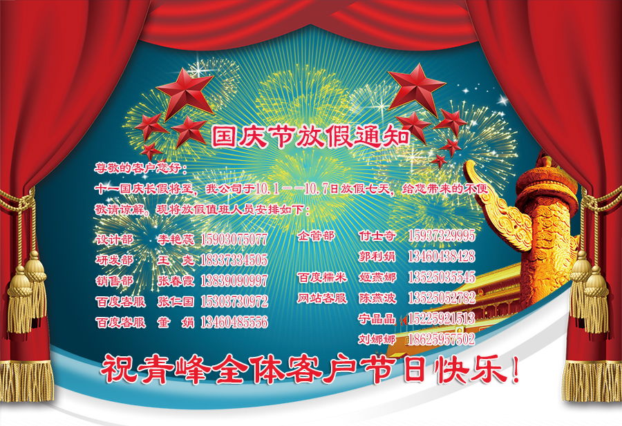 河南青峰網絡科技有限公司2014年“國慶節(jié)”放假通知